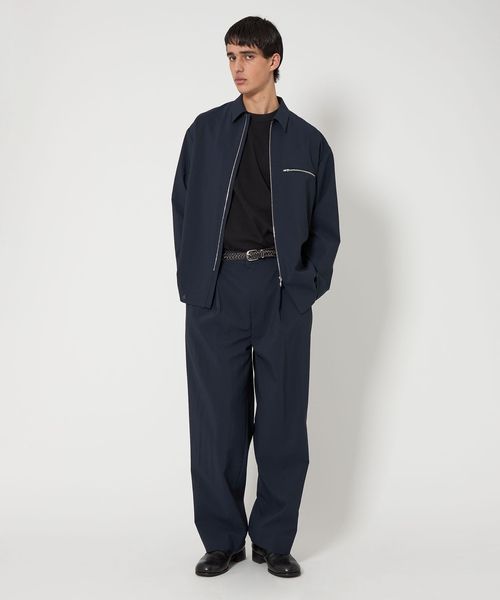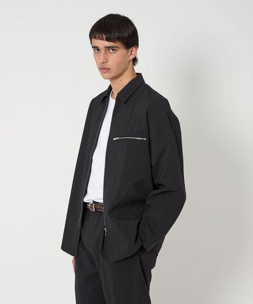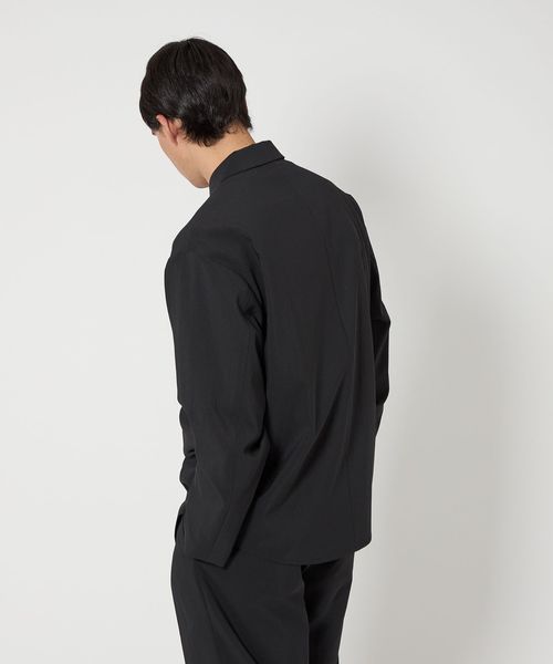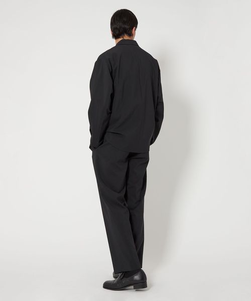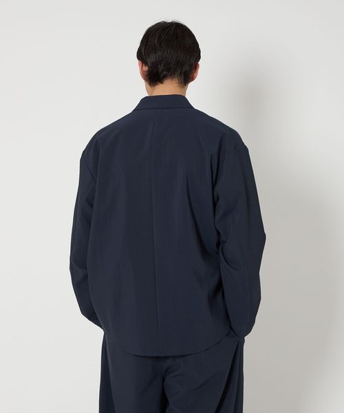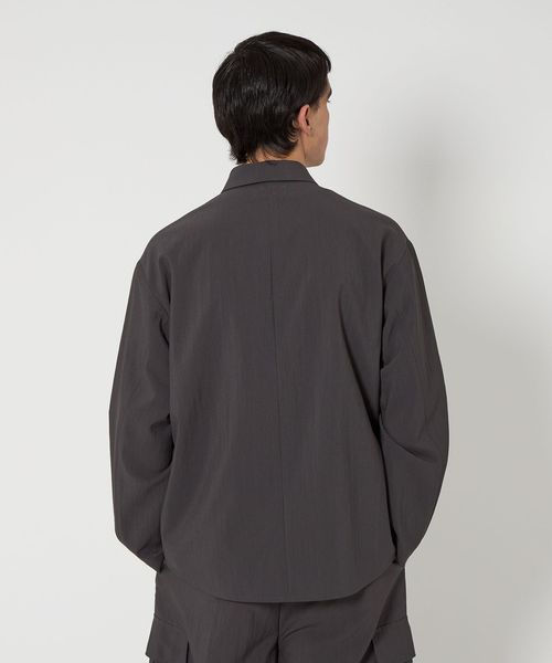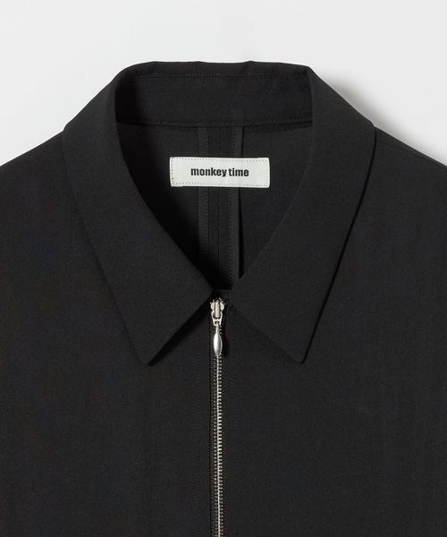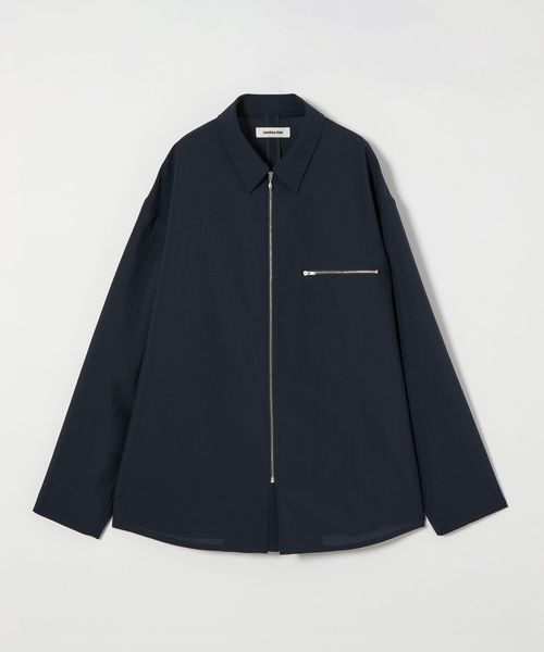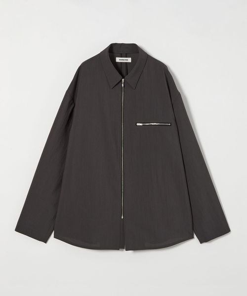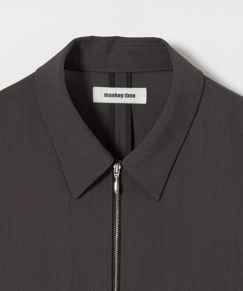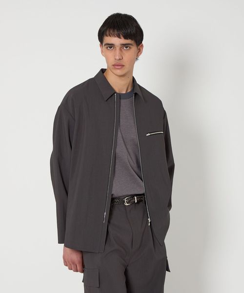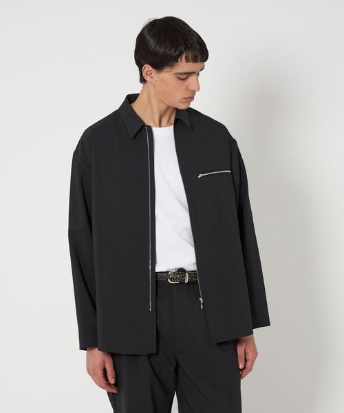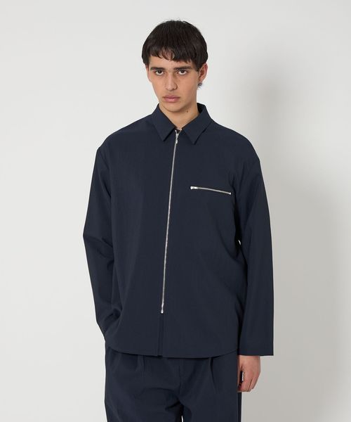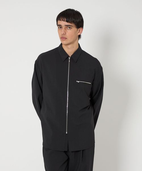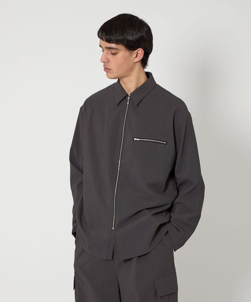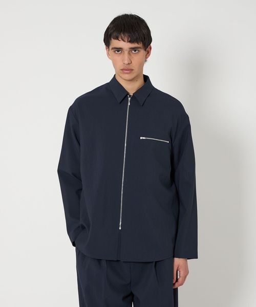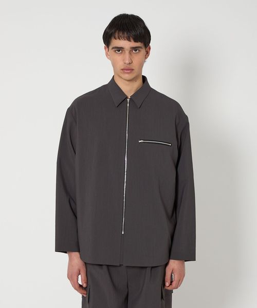 ウールライクなキレイ目の素材感ながらも麻のような肌離れの良さが特徴のジップシャツ。