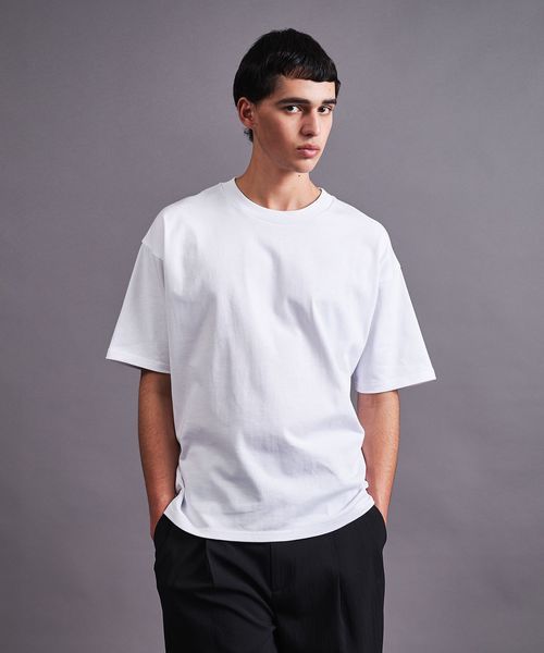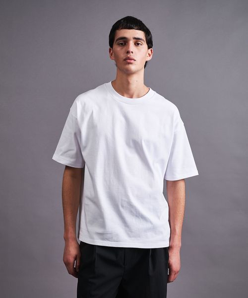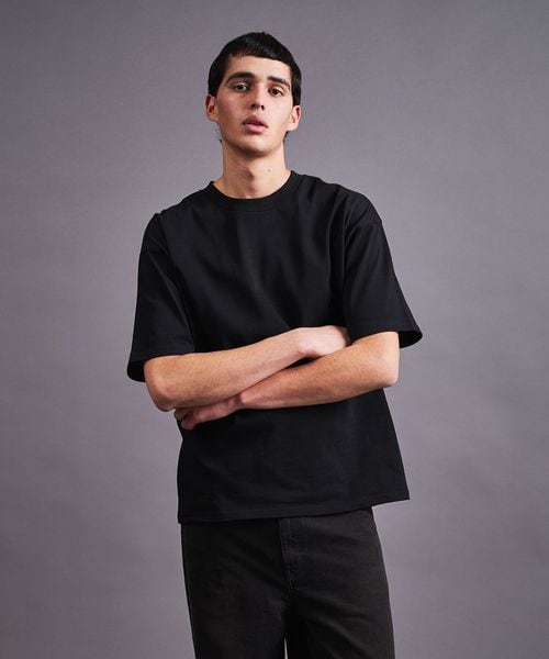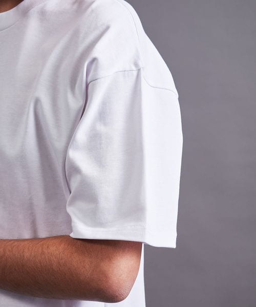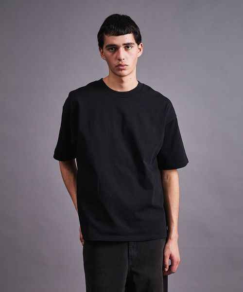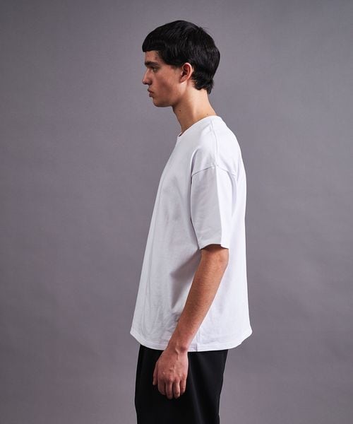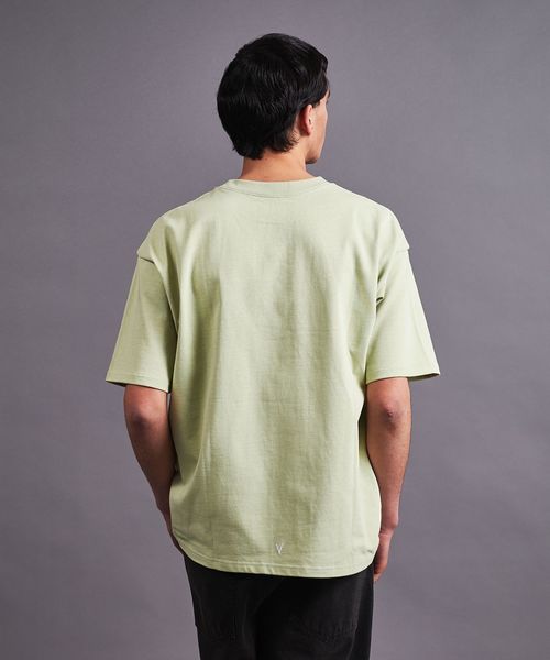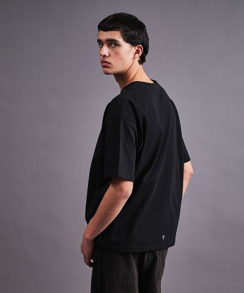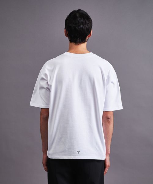 <VATANLOOP>のブランドロゴが後ろ裾にさりげなく刺繍されたTシャツ。