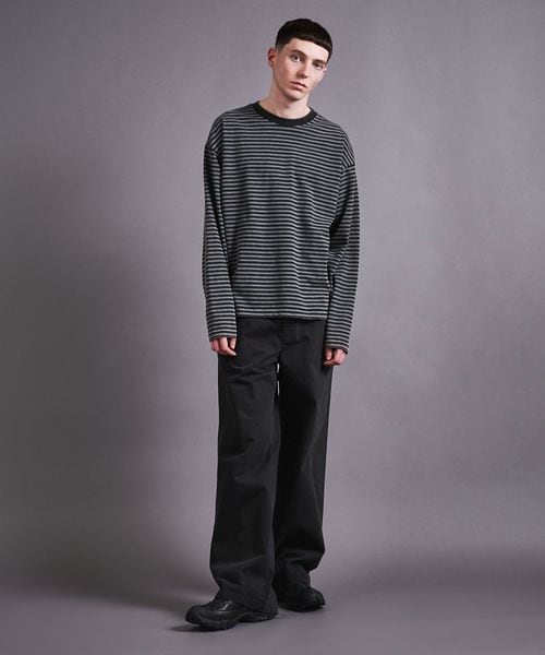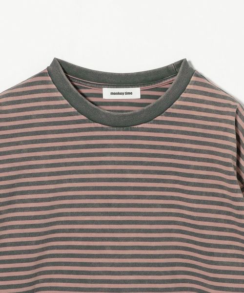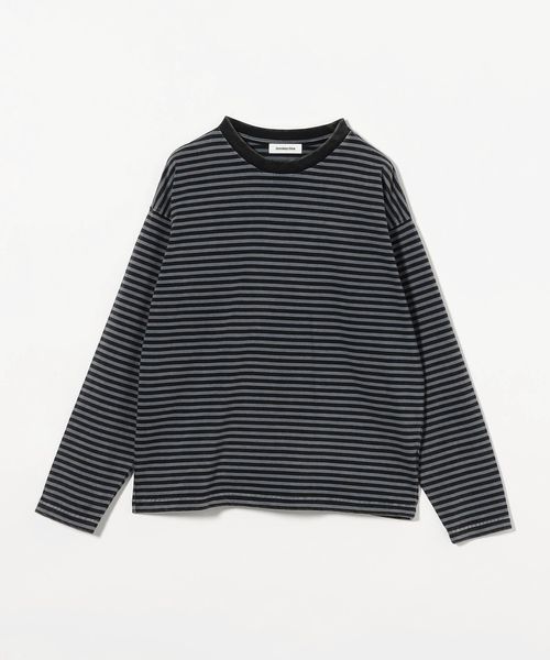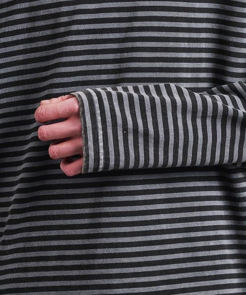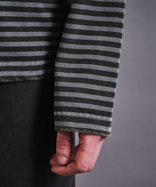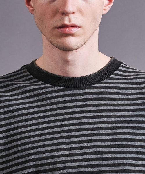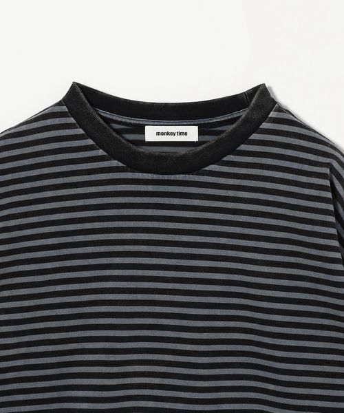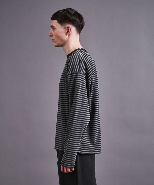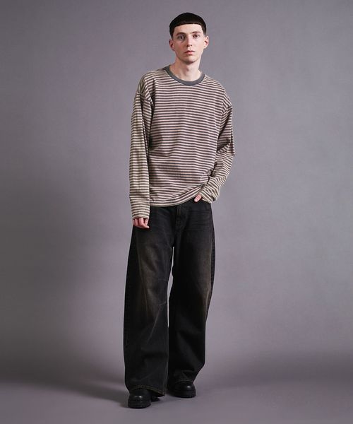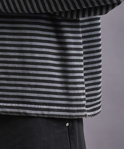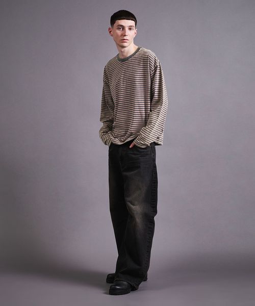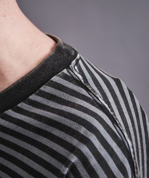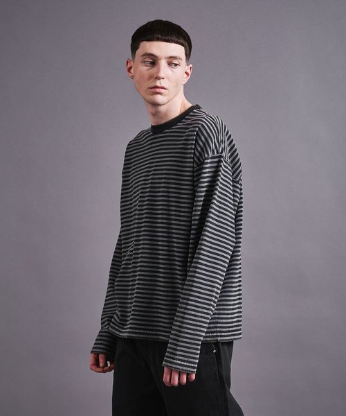 アシッドウォッシュで退色加工を施したボーダーロングスリーブTシャツ。