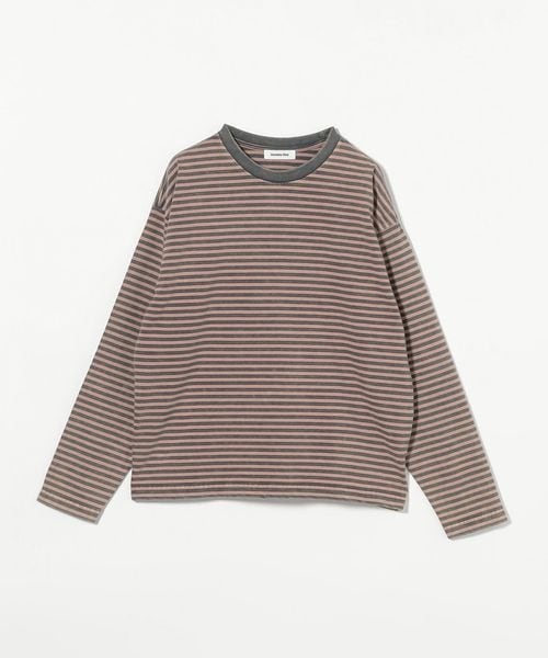アシッドウォッシュ ボーダー ロングスリーブ Tシャツ