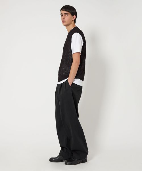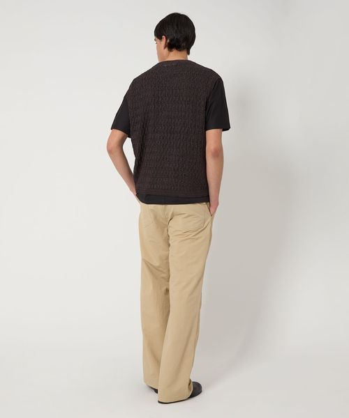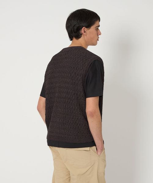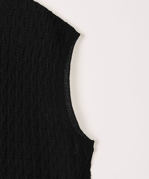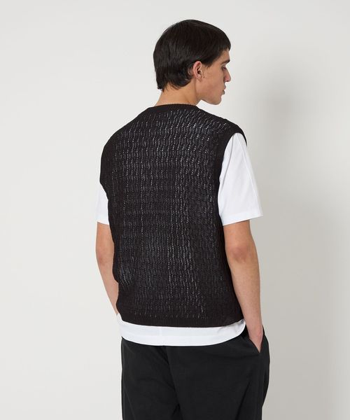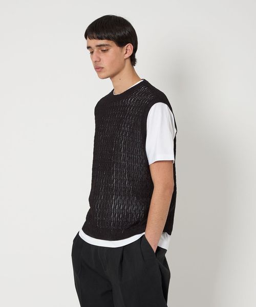 麻ライクな清涼感のある糸で編んだニットベスト。