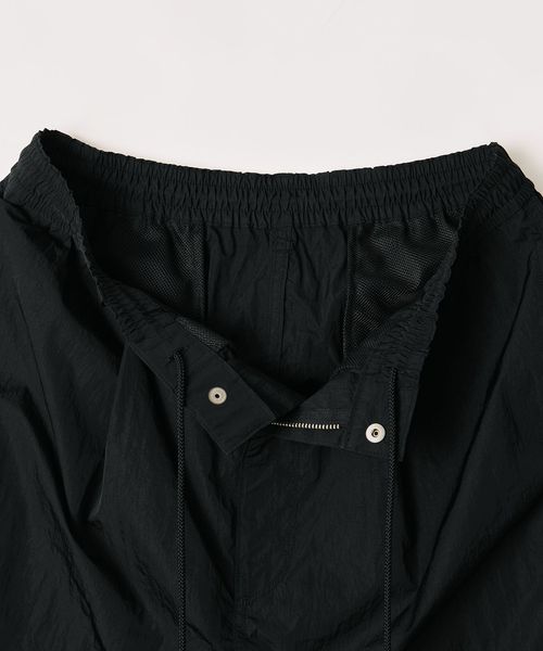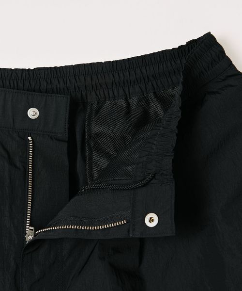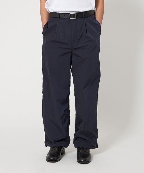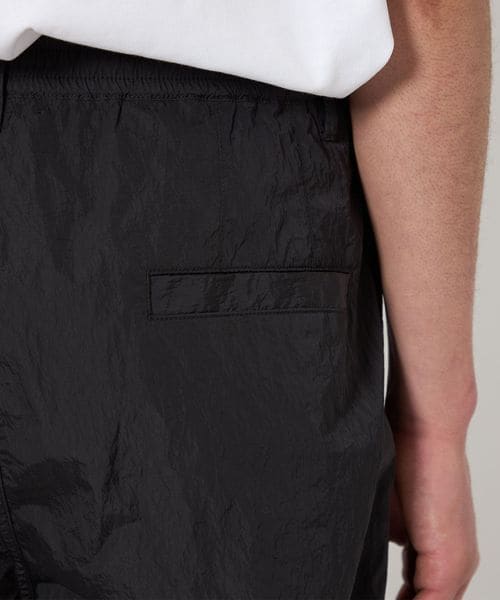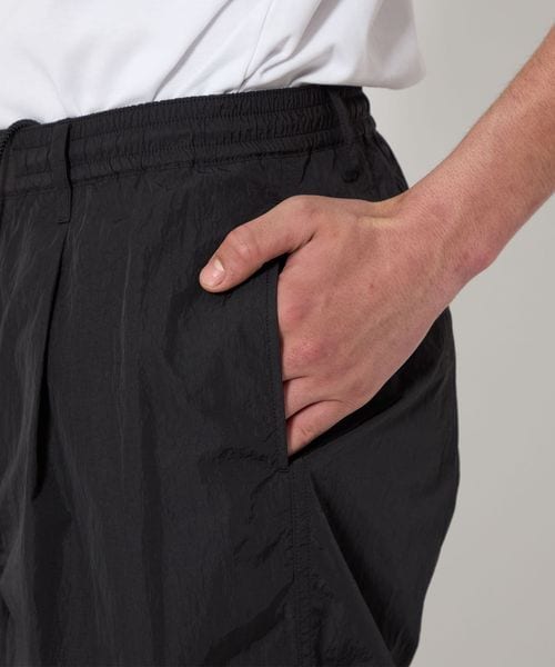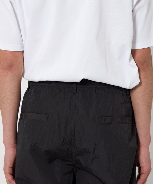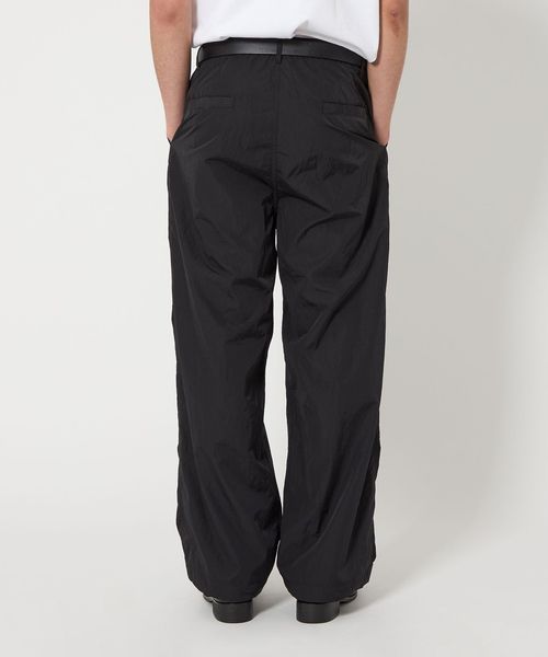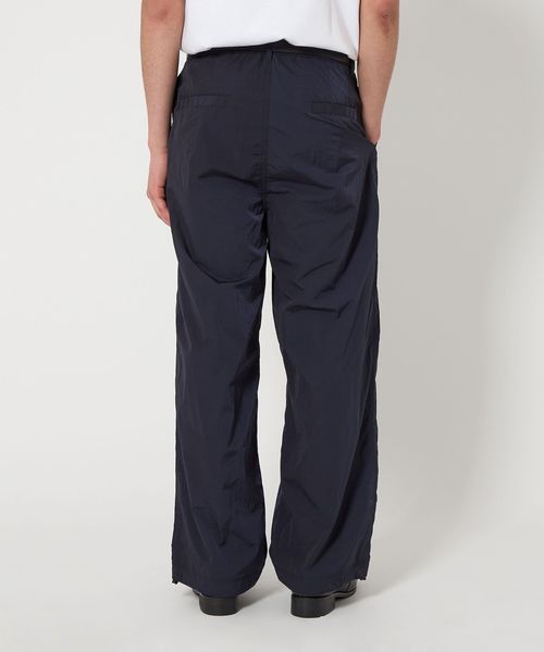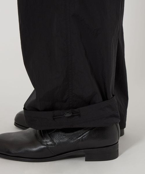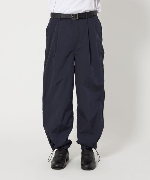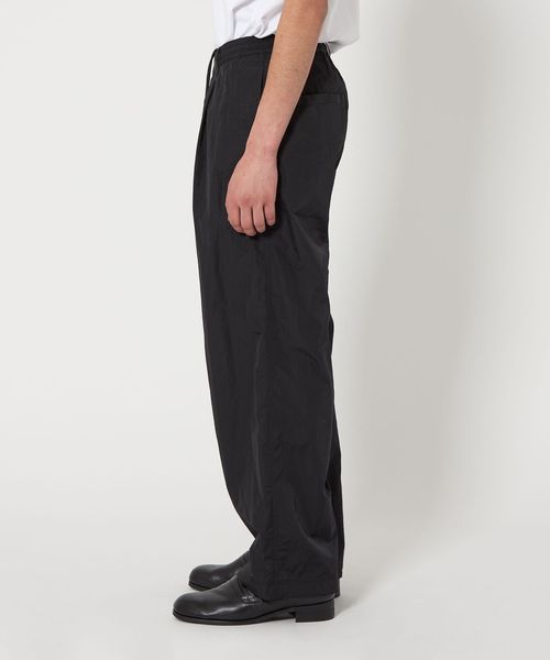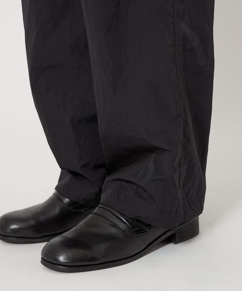 高級感のあるヴィンテージ加工(細かいナチュラルなシワ感)が施されたナイロンタフタを使用したワイドシルエットのイージーパンツ。