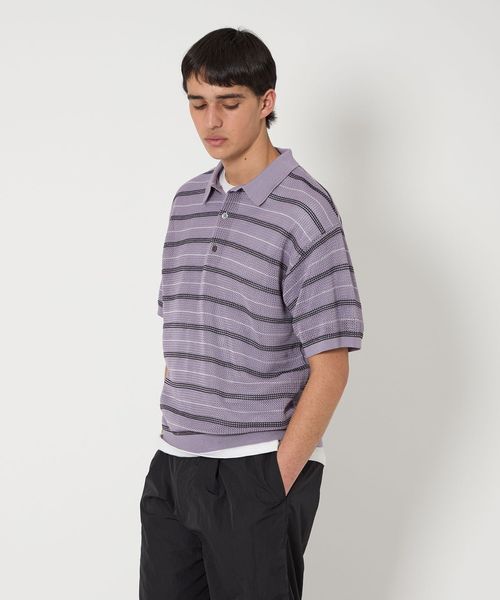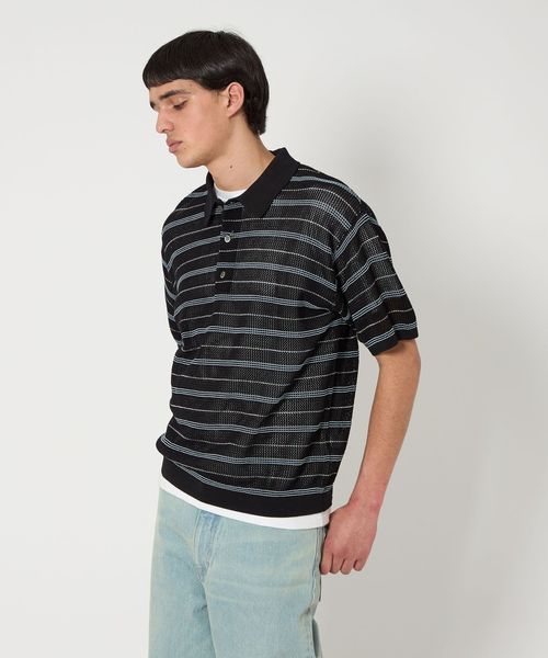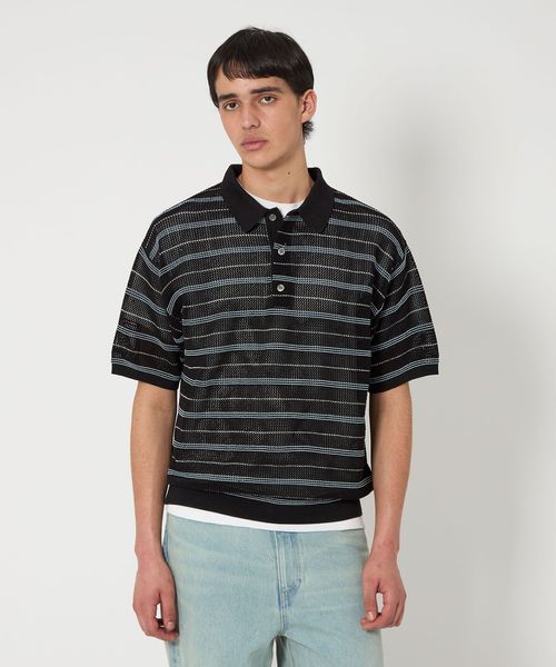 清涼感のある控えめな透け感のメッシュ組織で編んだニットポロシャツ。
