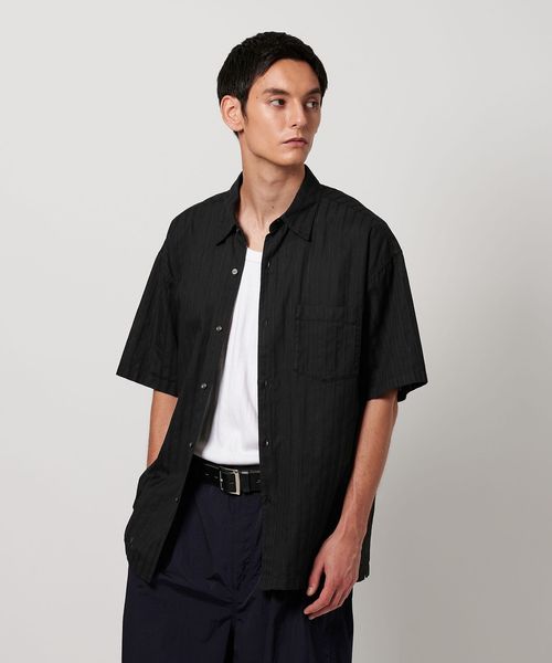 ガーメントダイ シアー カラミ ストライプ シャツ