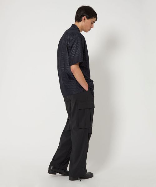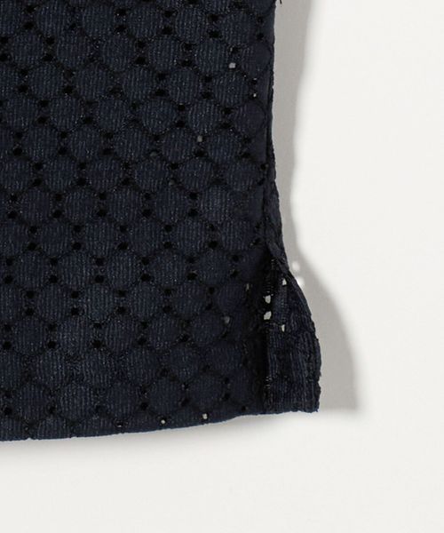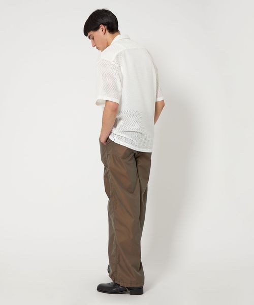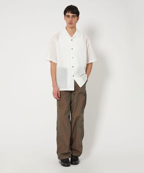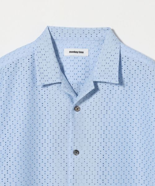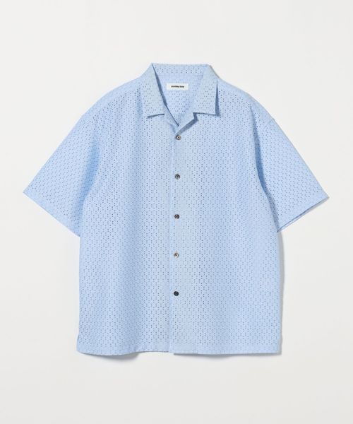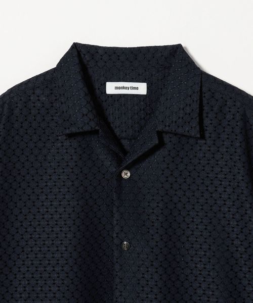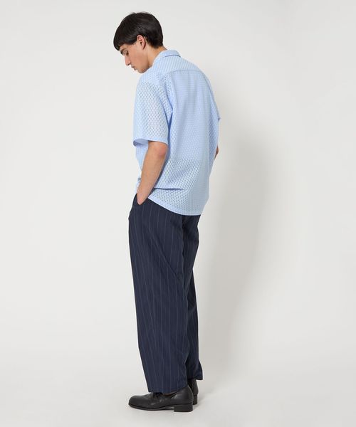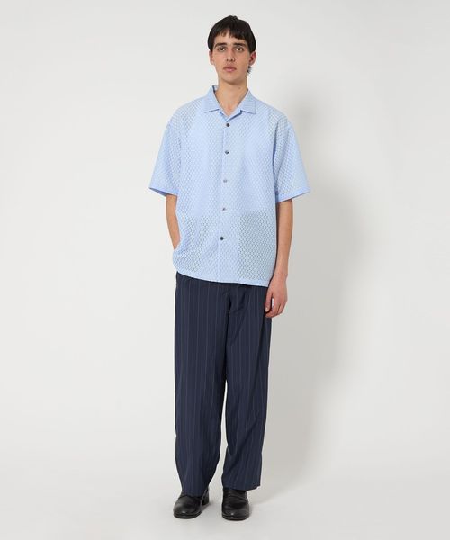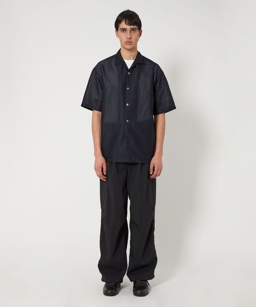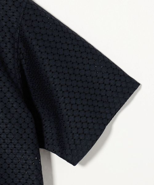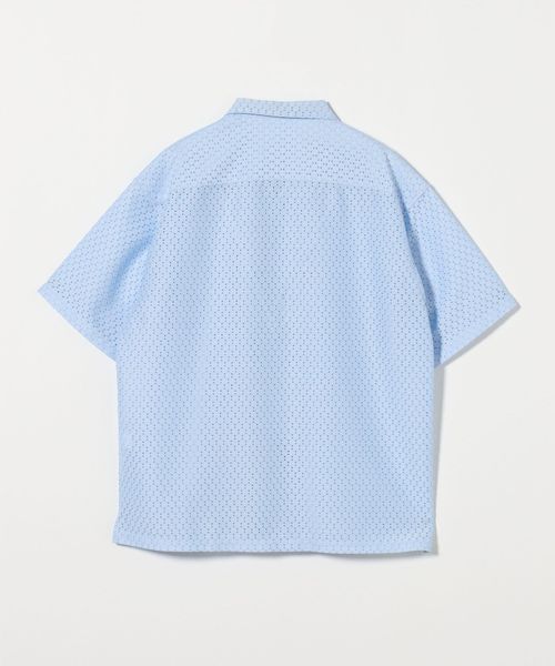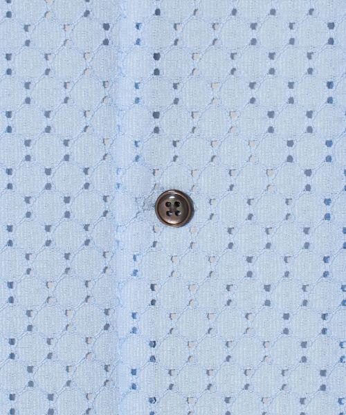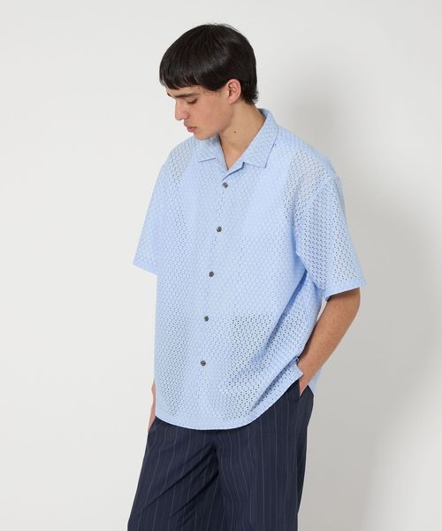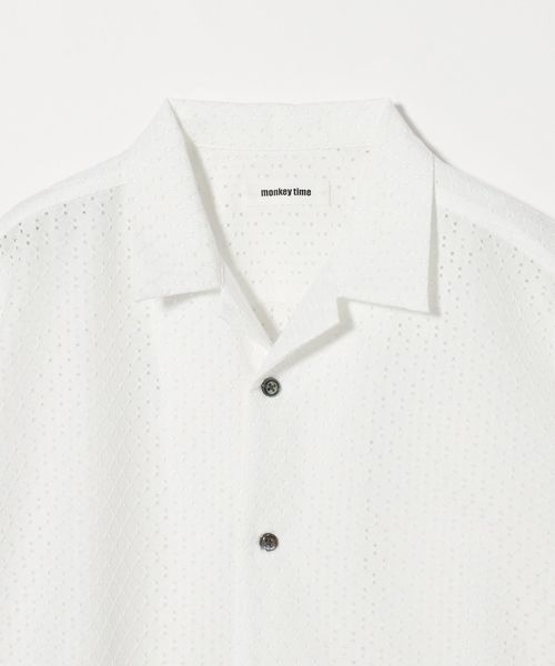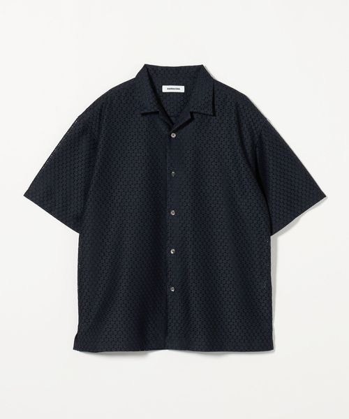 肌離れと清涼感のあるアイレット組織のラッセル素材を使用したオープンカラーシャツ。