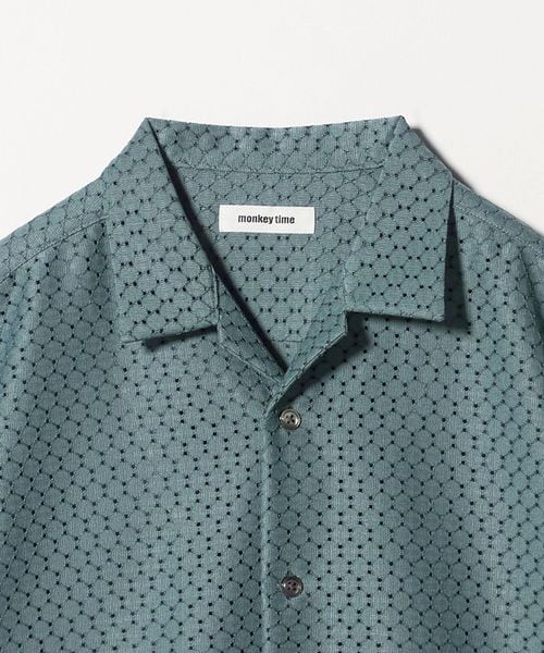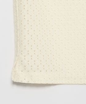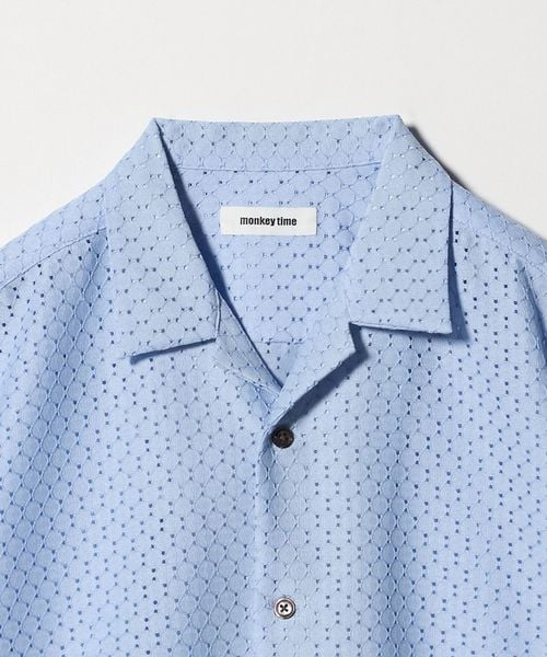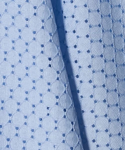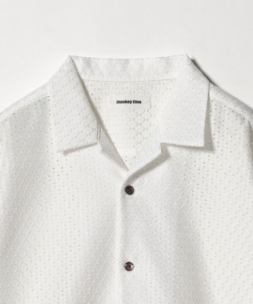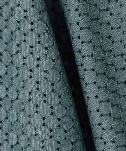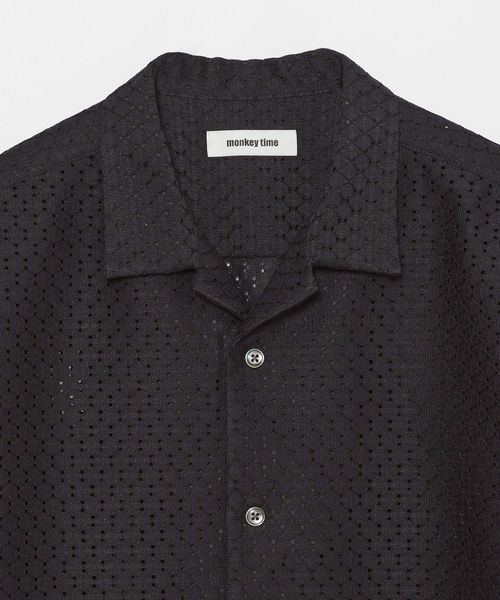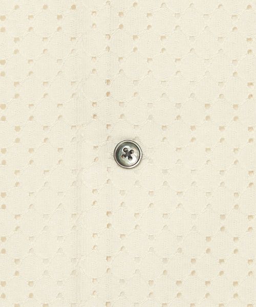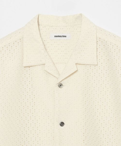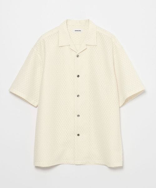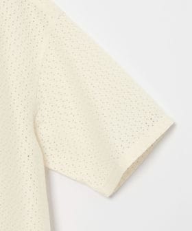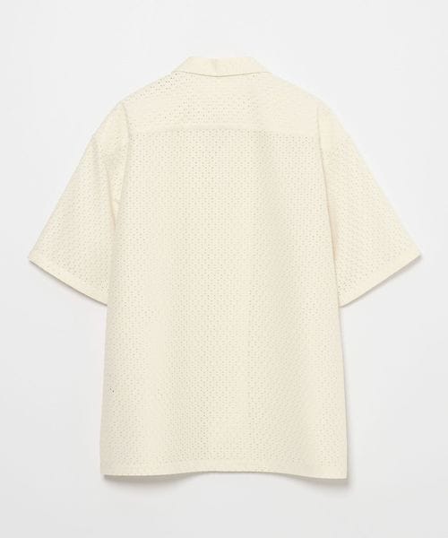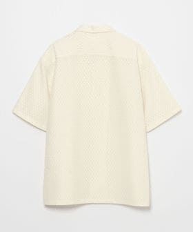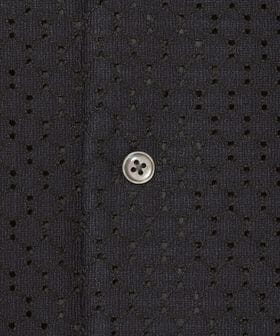 アイレット組織のラッセル素材を使用したオープンカラーシャツ。