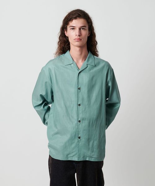 程よく緩さのあるオープンカラーシャツ。