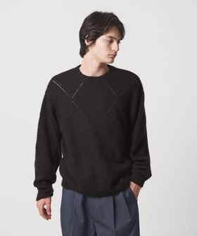 モヘヤミックス ダイヤパターン クルーネック ニット