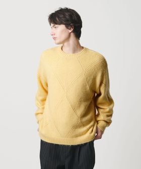 モヘヤミックス ダイヤパターン クルーネック ニット