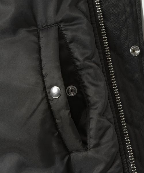 いわゆるMA-1等に採用される素材よりも綾目の立ったナイロンツイルを使用した中綿N-2B型のジャケット。