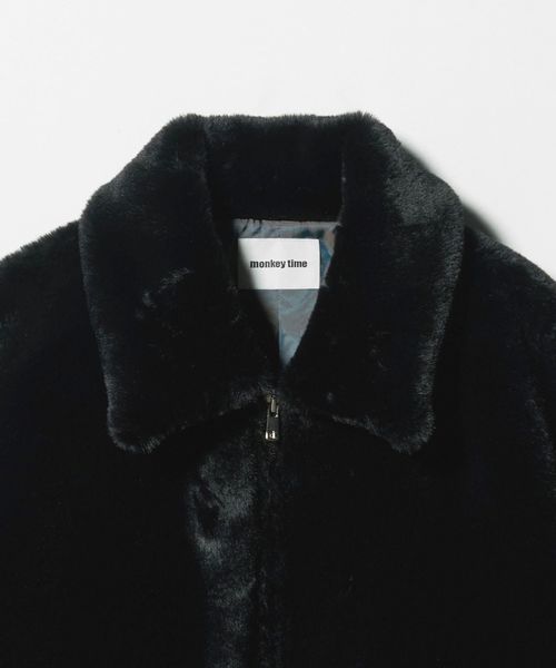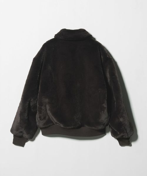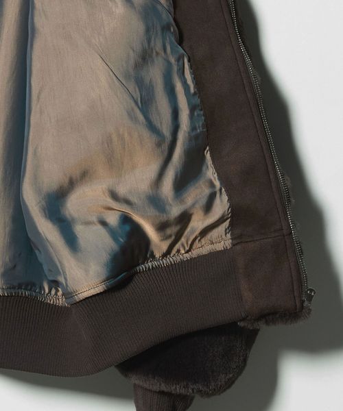 上品な毛並みとミリタリーディテールが特徴のファーライクジップブルゾン。