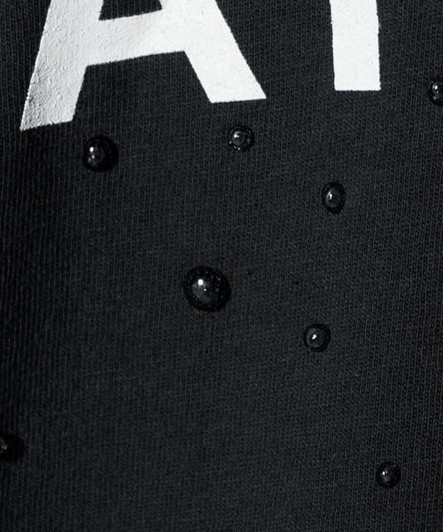 ドライな質感のコットン素材に特殊な技法で表現された水滴を模したプリントがデザインされており、立体的な表現が、Tシャツに独特の表情、奥行きを与えてくれます。