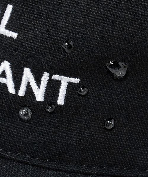 ドライな質感のコットン素材に特殊な技法で表現された水滴を模したプリントがデザインされており、立体的な表現がキャップに独特の表情、奥行きを与えてくれます。