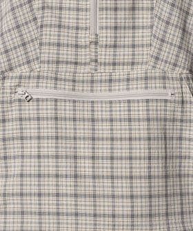 シアサッカーチェック生地を使用することで、軽やかで程よく力の抜けたフォルムが、着る人の個性を引き立ててくれます。