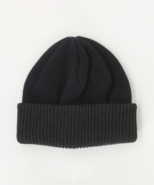 さりげないツートンの配色がアクセントのコットンニット帽。