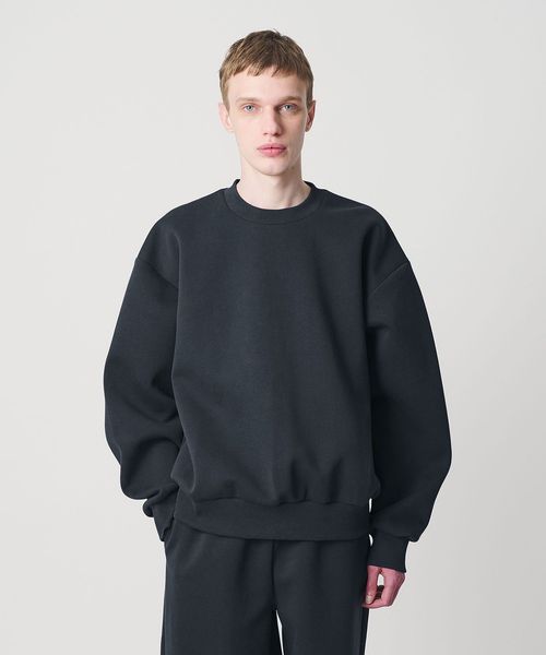 表面に裏毛、裏面天竺のボンディング素材を使用したプルオーバークルーネック。