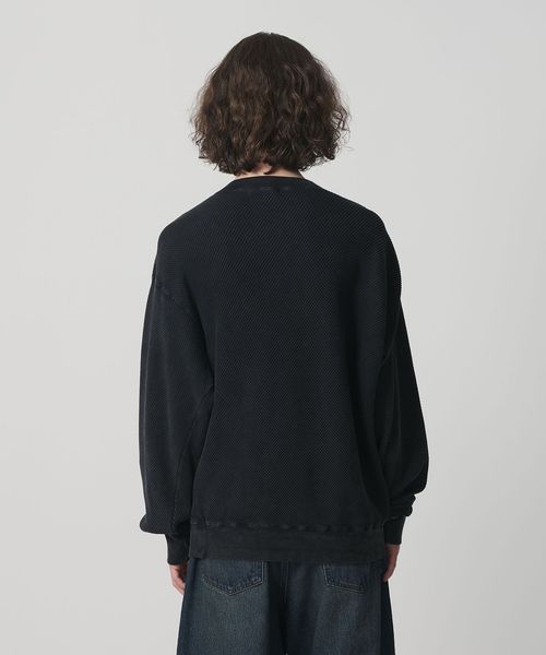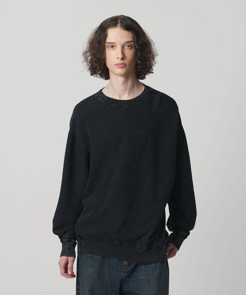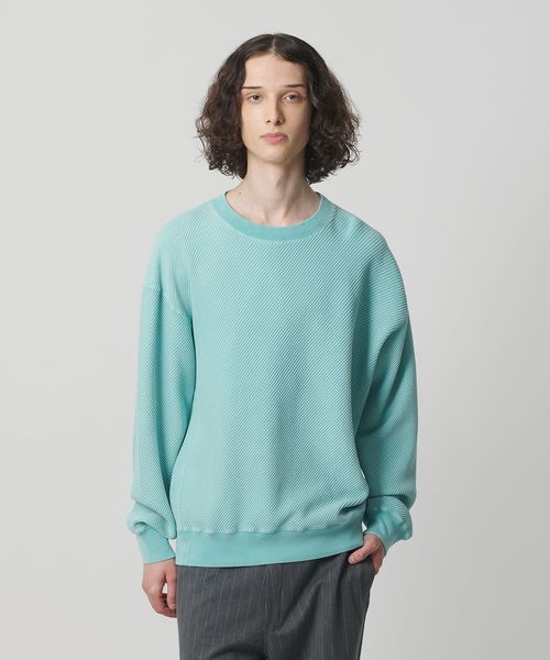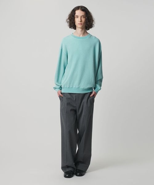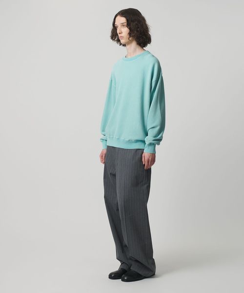 春先に着用しやすいスウェット未満のサーマル素材を使用したプルオーバークルーネック。