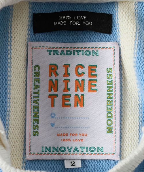 ライスナインテン(RICE NINE TEN)は、木村昭平氏がデザイナーを務める日本のメンズファッションブランド。ブランド名は「RICE(米) + NINE(九) + TEN (十) = 粋(いき)」を自由に表現する“かぶきもの”でありたい、という意志に由来しています。“直感と主観を第一”に、伝統と革新を織り交ぜながら独自のウェアを発信。アイデンティティやユーモアを持ち時代に媚びないスタイルを提案しています。