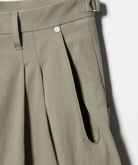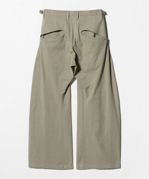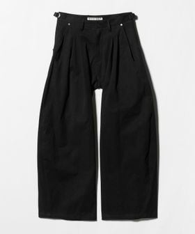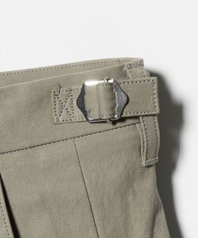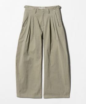 コットンの高密度ギャバジンを使用した、変形カーヴレッグの2タックバギーパンツ。
