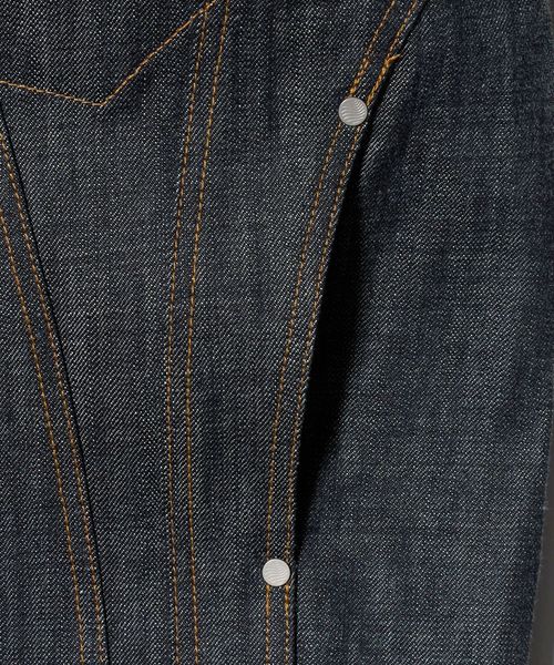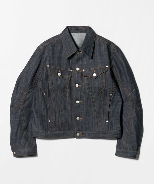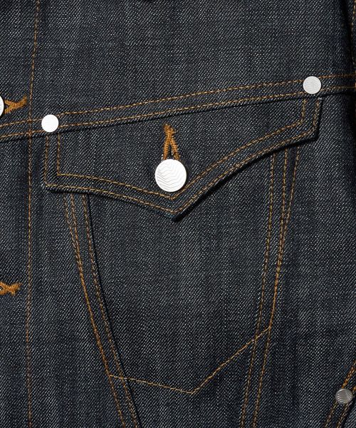 13オンスナチュラルスラブのローテンション織りデニムを採用したトラッカージャケット。