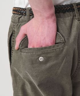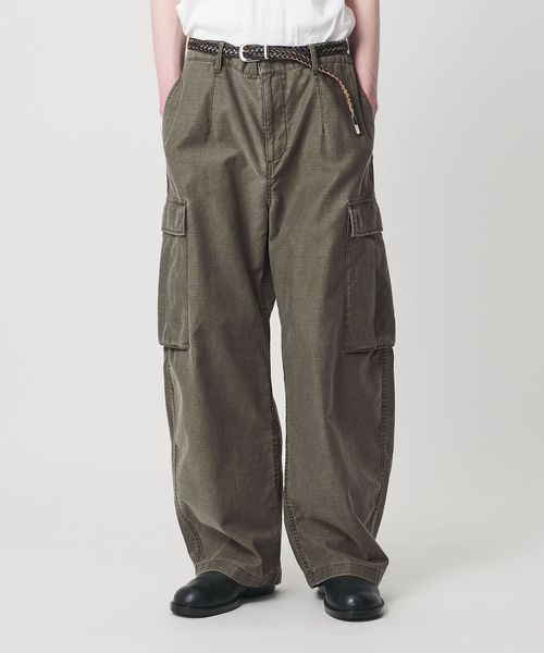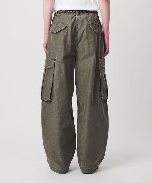 <monkey time>で高い人気を誇るカーブシルエットパンツをベースに、独特なマット感と落ち着いた雰囲気のバックサテン生地でカーゴタイプにアップデート。