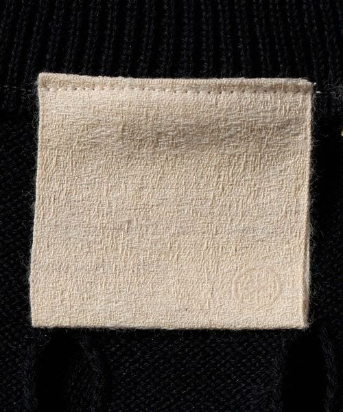 肩幅、アームにゆとりを持ちつつも身幅を細くとったミニマルなシルエットで、肩には別生地のパッチを配置したミリタリーニットを彷彿とさせるデザインです。