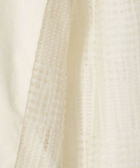計算されたパターンワークによって随所にレースを採用することで、ブランドの世界観が色濃く表現された、アートピースのような一着に仕上がっております。