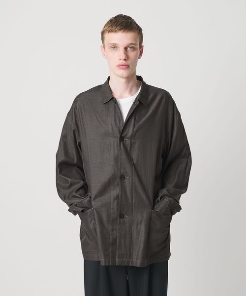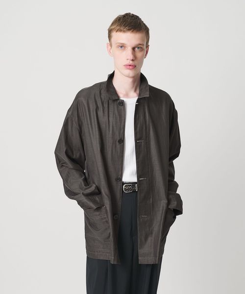 春の羽織りとして、デニムなどのカジュアルボトムス合わせでも品よくモード感を演出。