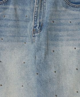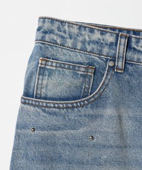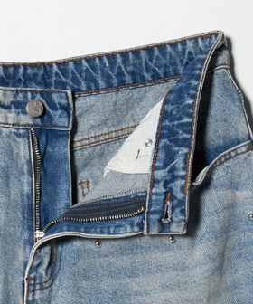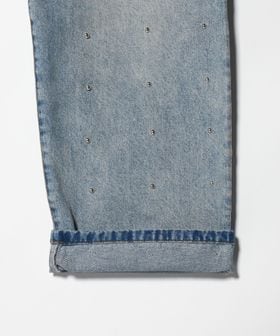 全体に散りばめられたスタッズがアクセントとなり、シンプルな中に程よいエッジを効かせたデニムパンツ。