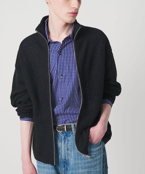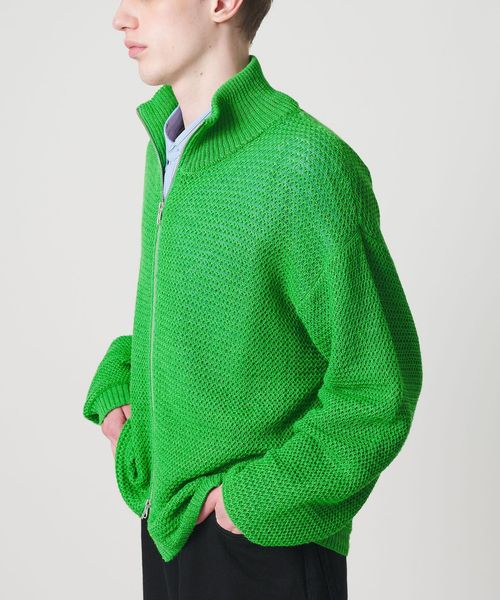表情豊かな編み組織のドライバーズ型スプリングニット。