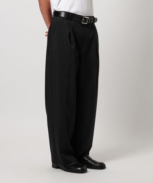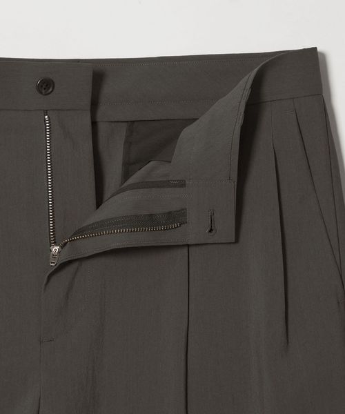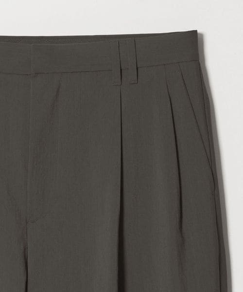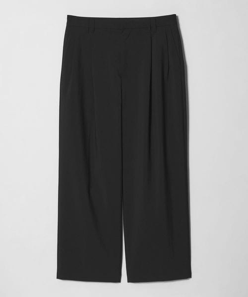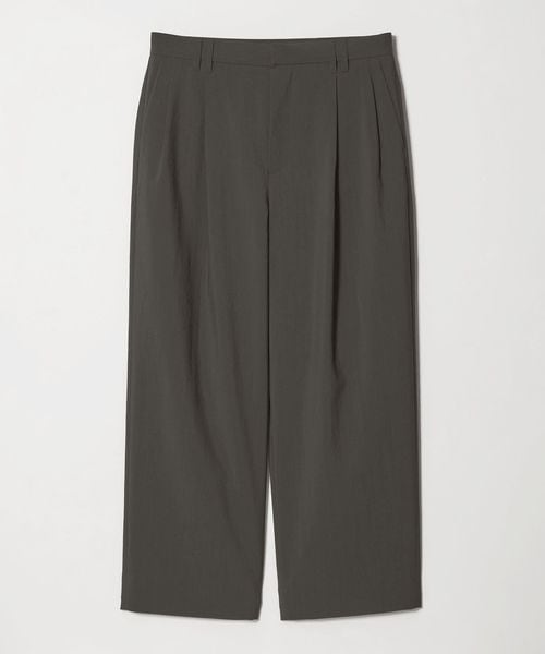 ウールライクなキレイ目の素材感ながらも麻のような肌離れの良さが特徴のワイドパンツ。
