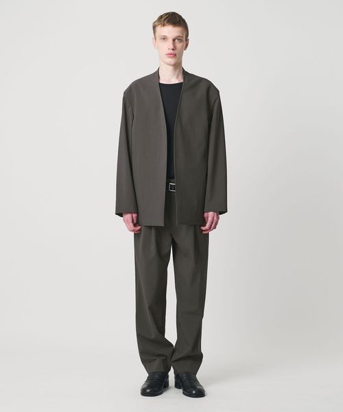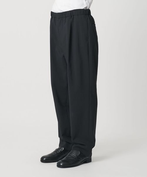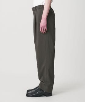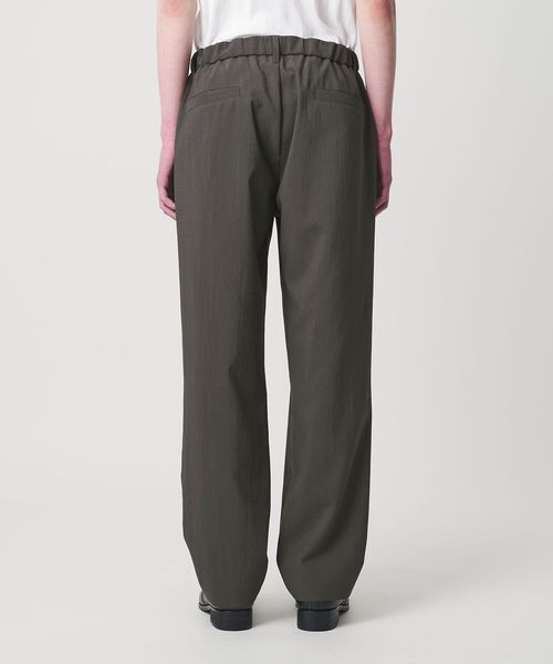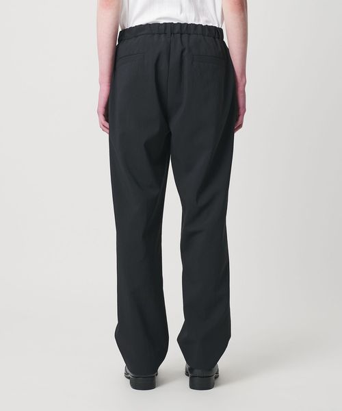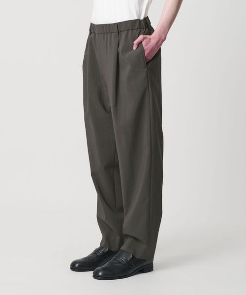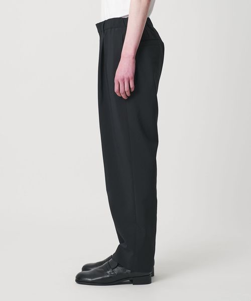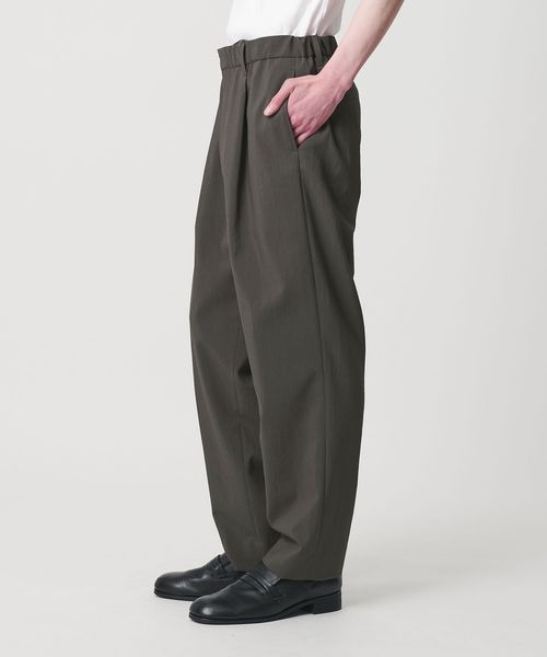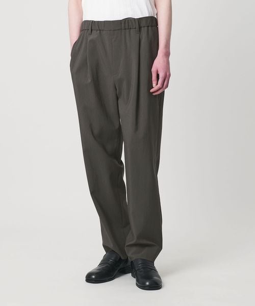 ウールライクなキレイ目の素材感ながらも麻のような肌離れの良さが特徴のテーパードパンツ。