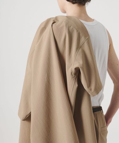 ウールライクなキレイ目の素材感ながらも麻のような肌離れの良さが特徴の<monkey time>夏の定番素材「RENUトロピカル」を使用したオープンカラーシャツ。