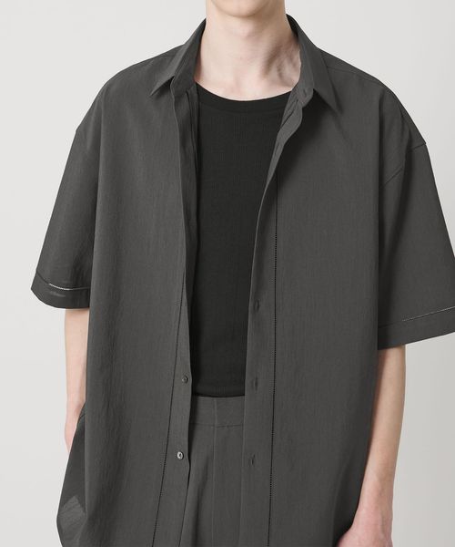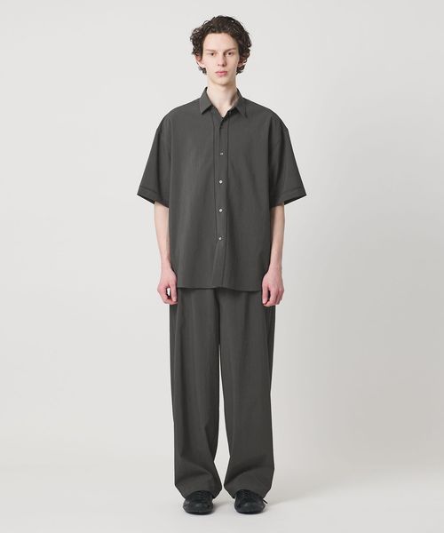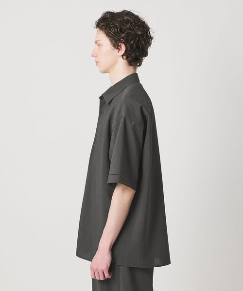 ウールライクなキレイ目の素材感ながらも麻のような肌離れの良さが特徴の<monkey time>夏の定番素材「RENUトロピカル」を使用した半袖シャツ。