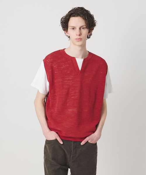 スラブ クルーネック スキッパー ベスト