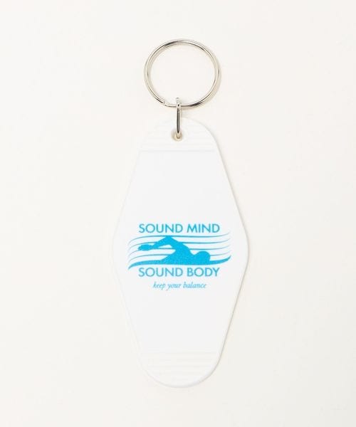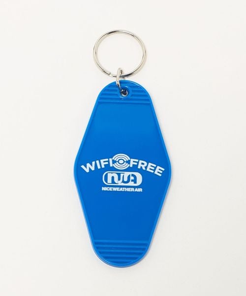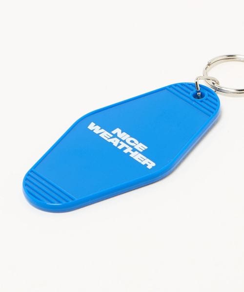 <NICE WEATHER>のシグネチャーカラーとホワイトの組み合わせが爽やかなモーテルキーをモチーフにしたキーリング。