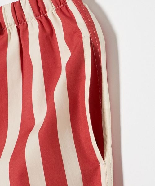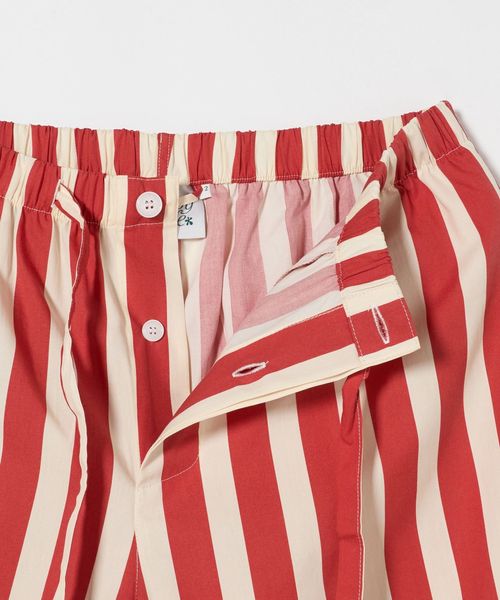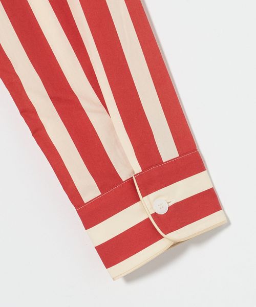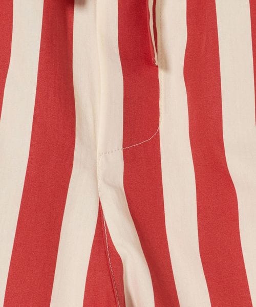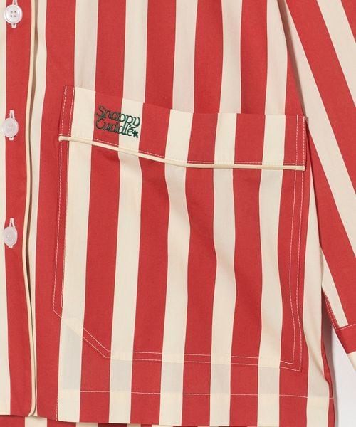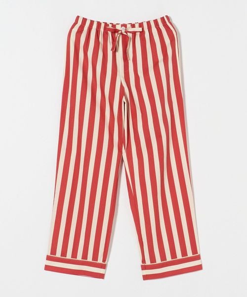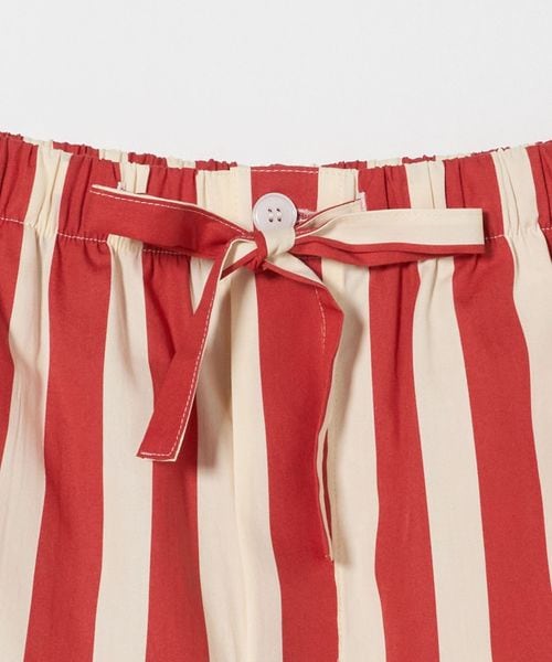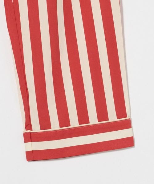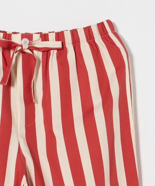 魅惑的なポピーレッドと柔らかなリリーホワイトのストライプ柄との調和が愛らしく、温かみのあるシンプルなスタイルを完成させた、ソフィティケイテッドスカーレットパジャマ。