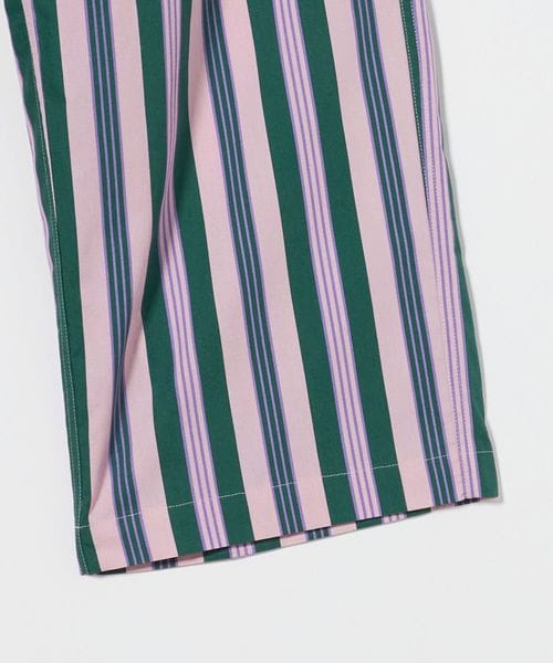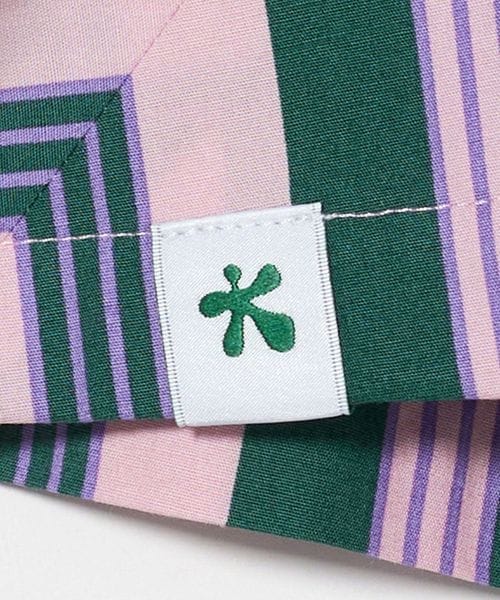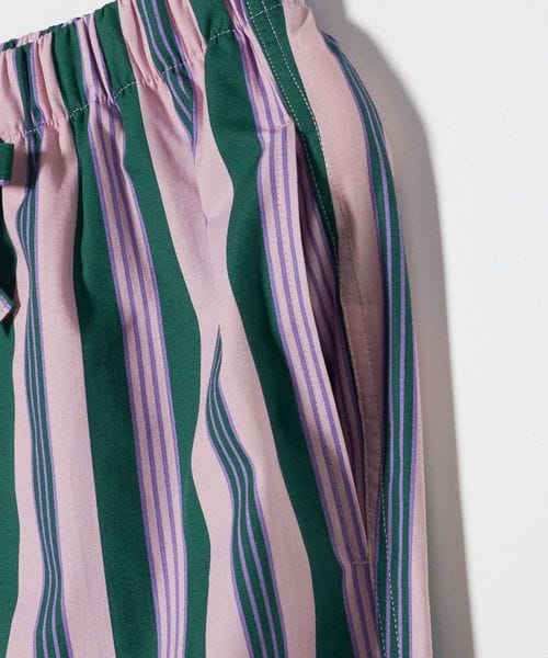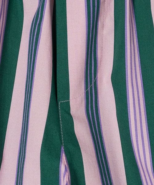 青みのある緑色、まろやかなピンク、そして夢幻的な紫色、いずれも心を温かく穏やかにしてくれる癒し系の色を組み合わせたストライプ。