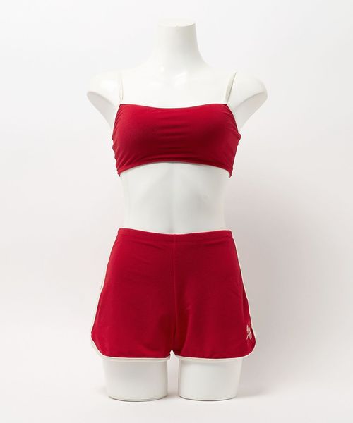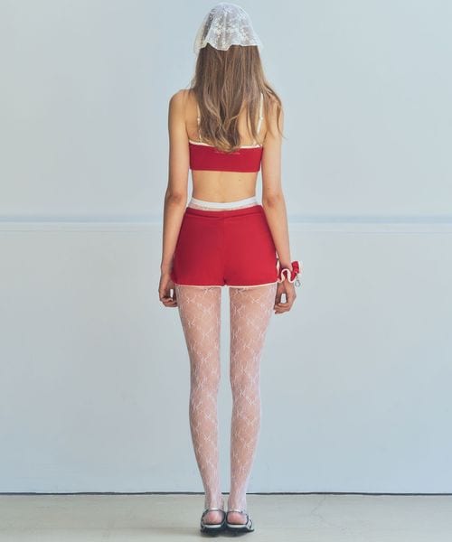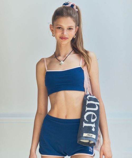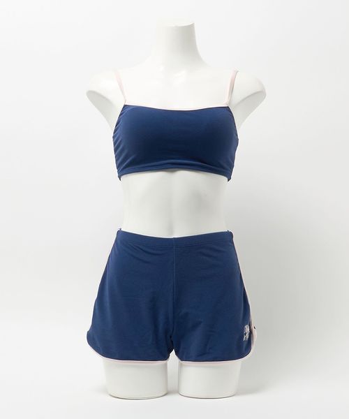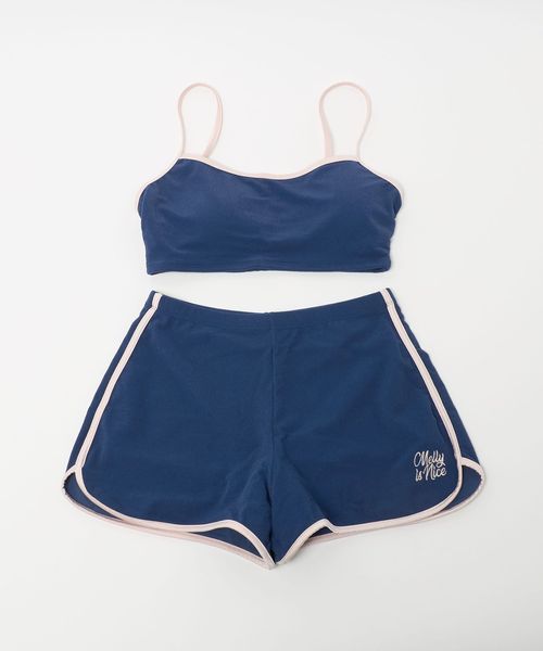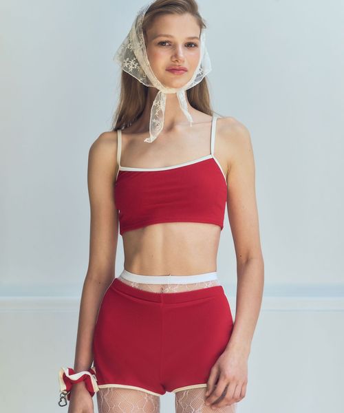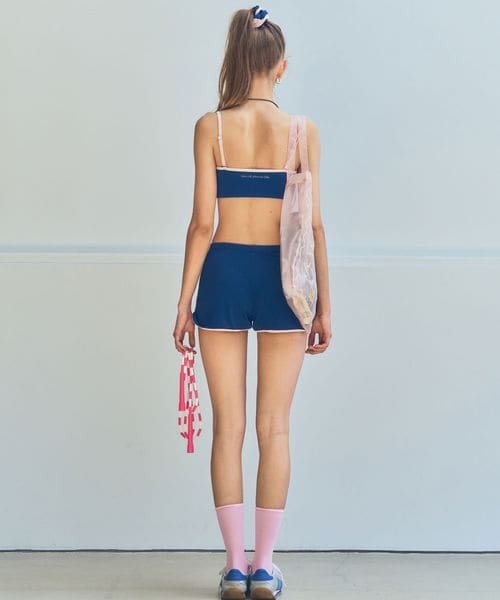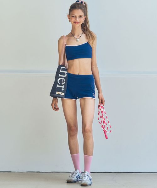 こちらは、カラーの組み合わせを通じてスポーティなムードを強調しながら、デイリーにも取り入れやすいスポーティルックとして着こなせるようにデザインされた、ブラトップとショートパンツのセット。