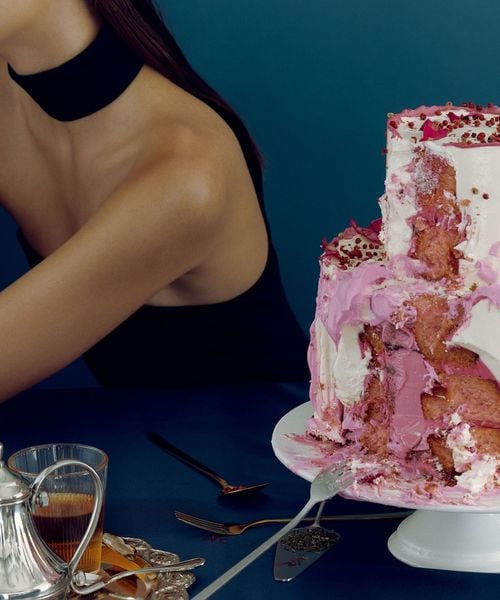 「ROSE CREAM CAKE WITH PERUVIAN PINK PEPPERCORNS」