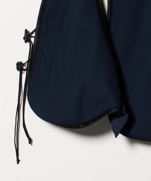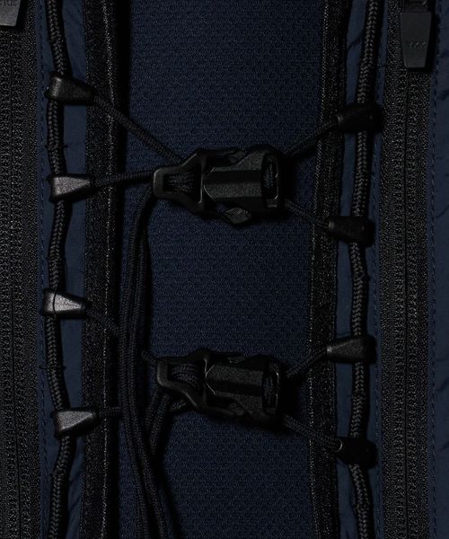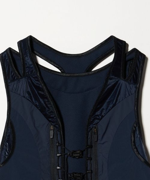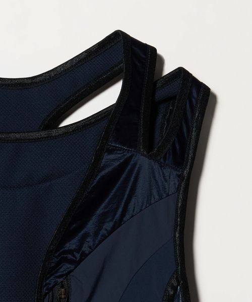 3つの生地のトーンとテクスチャーを調和させて配置したランニングベスト。