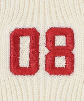 生成りベースにロゴとナンバーをカラー刺繍でほどこしています。