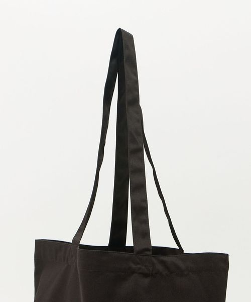 フロントにシグネチャーロゴグラフィックをプリントしたツイル素材のシンプルなトートバッグ。