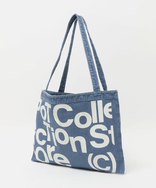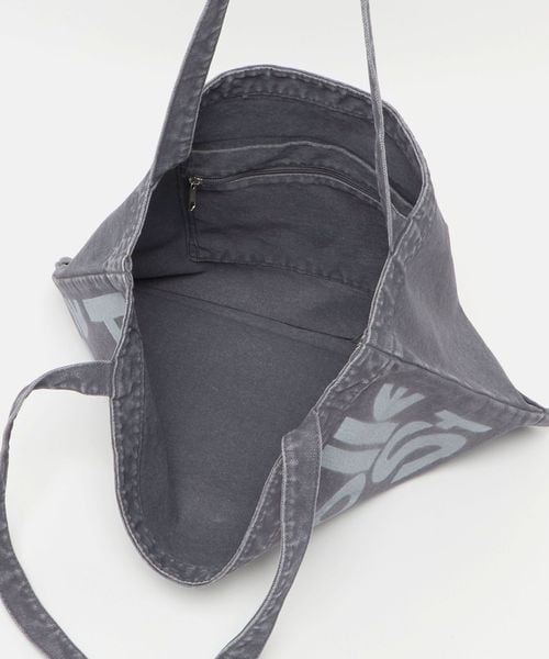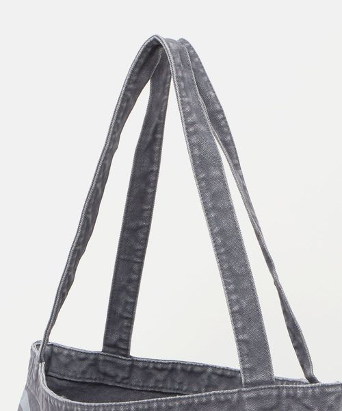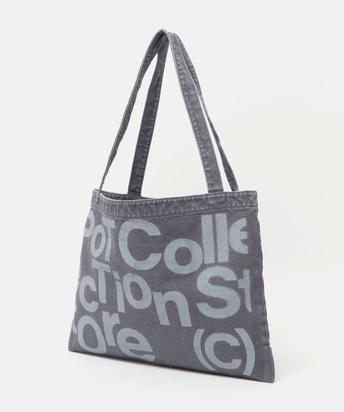 ユニークなプリントが特徴的なスクエア型トートバッグ。