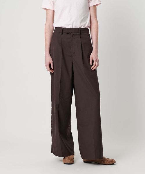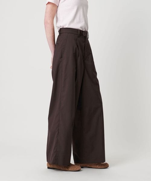 フロントタックとバックダーツでたっぷりと分量感のあるワイドシルエットに仕上げています。
