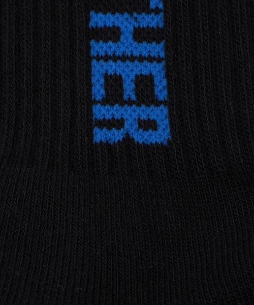 ブラックにブルーのロゴが映えるリブソックス。