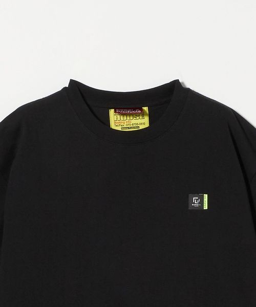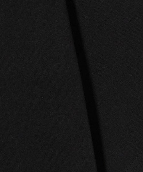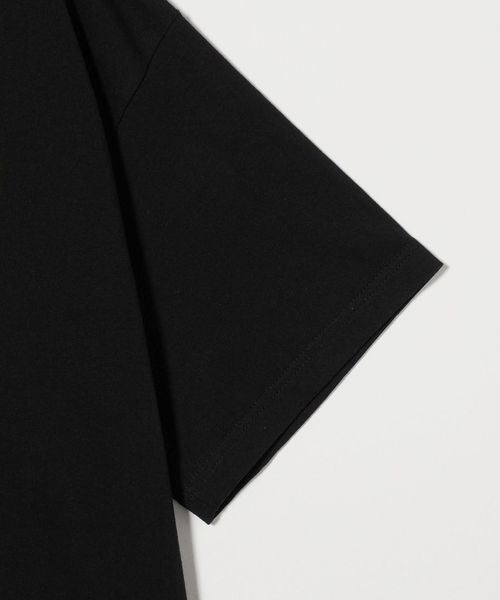 クルーネックにボックスシルエットのシンプルなデザインのブラックボディに、ブランド名のロゴグラフィックプリントが映えるTシャツ。
