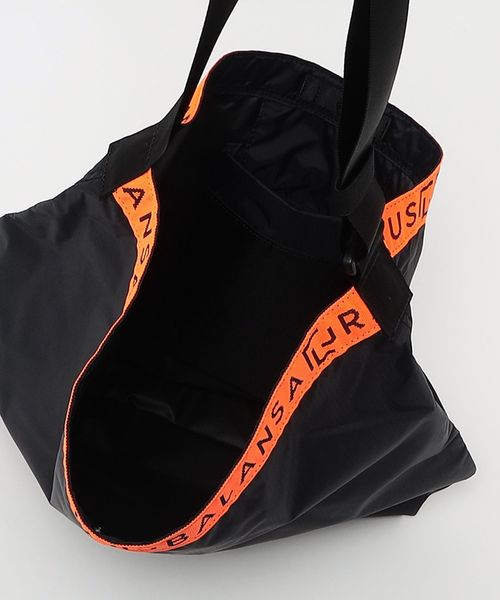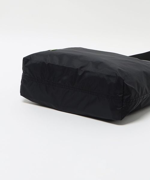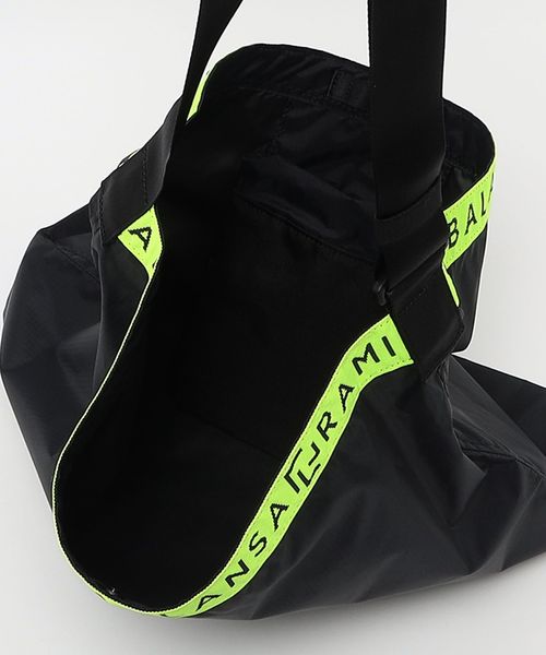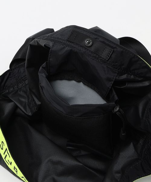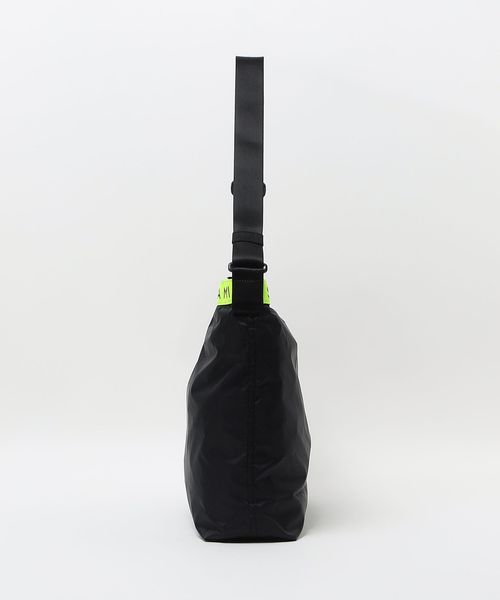 ネオンカラーが目を引く、ブランドネームが織り込まれたテープがポイントのショルダーバッグ。