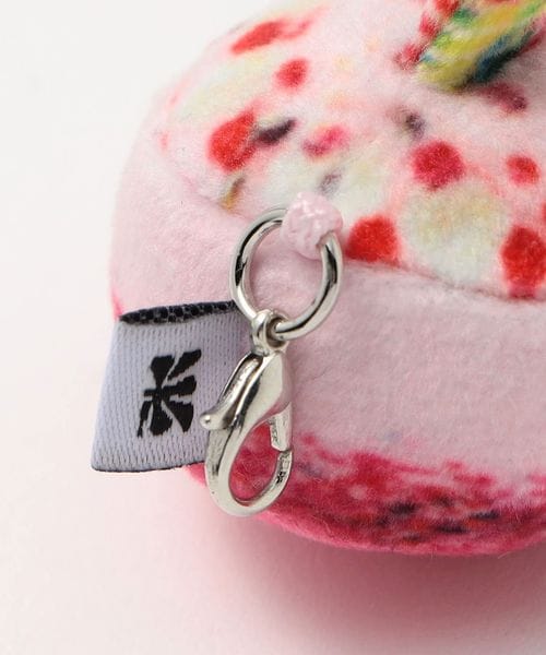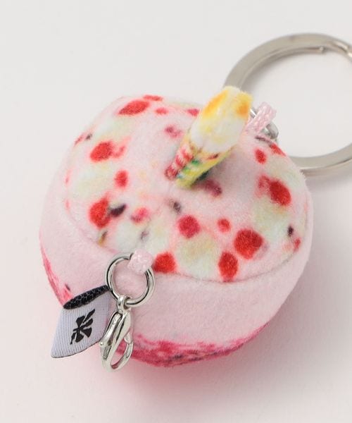 ケーキをモチーフにしたぬいぐるみキーホルダー。
