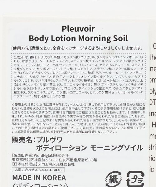 <Pleuvoir>Morning Soil Body Lotion/ボディローション